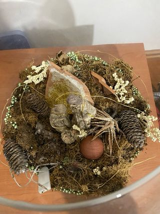 Presepe assemblato a mano, con muschio vero, base in legno e statuine altezza 5/6 cm. Misure in foto, per qualsiasi informazione scrivetemi. Prezzo trattabile.