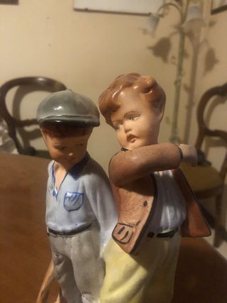 Coppia di statuine di bimbi in ceramica