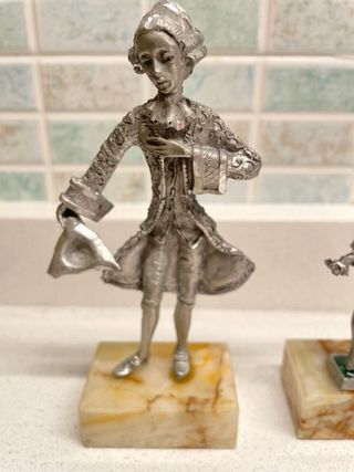 Set 3 statuine peltro vintage, base marmo