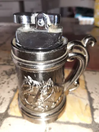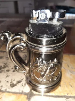 Bellissimo accendino da tavolo vintage anni 70, di fattura Svizzera, in lega di metallo, raffigura un boccale di birra decorato in rilievo con dei cavalli. Necessita del cambio della pietrina e di essere caricato a gas. Perfettamente conservato con tutte le sue parti originali. Nessun difetto. #accendinovintage #accendinosvizzero #accendinodatavolo #accendinodacollezione #accendinovintageanni70 #accendinoboccaledibirra #vintageanni70 Un pezzo unico per collezionisti o per aggiungere un tocco di stile. - Materiale: metallo