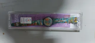 Orologio Swatch dell'edizione speciale Paulo Mendoça by melody. Prodotto in Svizzera. Caratteristiche Marca: Swatch, Edizione artistica: Paulo Mendoça, Fabbricazione: Swiss Made, Movimento: al quarzo, Dimensioni: circa 34 mm (tipo Gent), Materiale cassa: plastica, Cinturino: plastica originale Swatch, Design artistico con numerazione e grafica del quadrante, Resistenza all'acqua: 30 m, Include scatola originale Swatch, Funzionava correttamente prima dell'esaurimento della batteria, Stato: Usato, con lievi segni di usura normali, Cinturino e cassa in buone condizioni generali, Non funziona per mancanza di batteria, Ideale per collezionisti o amanti del design.