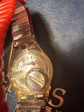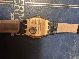 Pezzo da collezione di Swatch 37 con 30 anni di storia. Design esclusivo della collezione. Bracciale metallico dorato. Dettagli in blu.