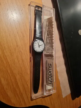 Orologio SWATCH SWISS Quartz Collezione Vintage. Diametro: 40mm. L'orologio funziona perfettamente. Collezione vintage. Cinturino nero. Fibbia metallica con logo Swatch.