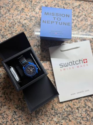 Omega x Swatch MoonSwatch Mission to the Neptune Orologio originale acquistato in store ufficiale. Condizioni pari al nuovo, completo di scatola e accessori. Disponibile a spedizione tramite Wallapop.