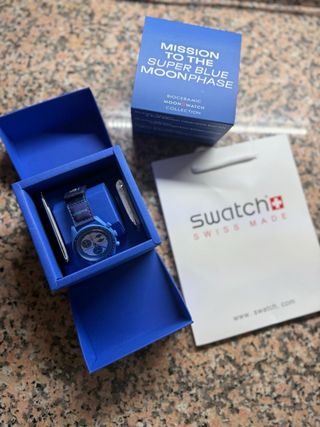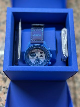 Omega x Swatch MoonSwatch Mission to the SuperBlue Orologio originale acquistato in store ufficiale. Condizioni pari al nuovo, completo di scatola e accessori. Disponibile a spedizione tramite Wallapop.