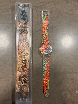 Orologio Swatch originale con movimento al quarzo. - Cassa e cinturino con design colorato. - Scatola originale inclusa. - Swiss Made.