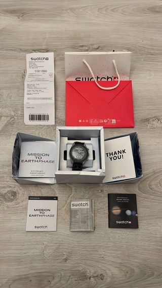 Orologio Swatch x Omega Mission to Earthphase della collezione Bioceramic MoonSwatch con design ispirato alla luna. l'orologio è completo di fattura,garanzia ufficiale,istruzioni d’uso,fogli illustrativi originali, box e confezione completa. L’orologio è in condizioni eccellenti, tenuto in modo perfetto, pari al nuovo, senza graffi né segni di usura. Perfettamente funzionante.