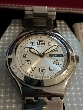 swatch irony totalmente acciaio con datario quadrante blu