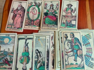 Mazzo di tarocchi completo con carte illustrate. Include le carte degli Arcani Maggiori e Minori. Design classico e dettagliato. In perfette condizioni.