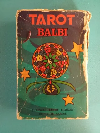 Mazzo di Tarocchi Balbi, edizione bilingue. Tarocchi vintage degli anni '70. - Contiene 78 carte con bellissimi disegni. - Design circolare centrale con simboli. - Stelle decorative. - Toni verdi e arancioni predominanti. Un tarocco vintage in perfette condizioni e con tutte le carte. Ha una brochure descrittiva, è vecchia ma si legge. La scatola è come si vede nelle foto a causa della sua età. **con l'acquisto** viene fornito un dossier di un corso introduttivo ai Tarocchi