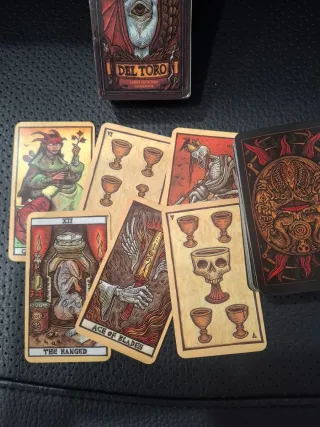 Mazzo di tarocchi Del Toro con il suo libro guida. Illustrazioni uniche ispirate all'universo di Guillermo del Toro. Include carte di tarocchi e un libro guida complementare.