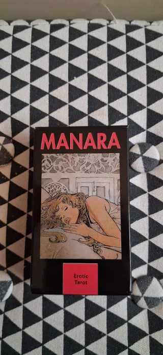 Set di tarocchi Manara di Milo Manara, edizione Erotic Tarot. - Illustrazioni sensuali e artistiche. - Copertina rigida nera con dettagli in rosso.