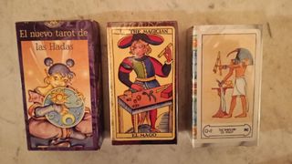 Tre mazzi di tarocchi tra cui scegliere: - Tarocchi spagnoli. - Tarocchi egiziani. - Il nuovo tarocchi delle fate. - Include una scatola in legno per riporli.