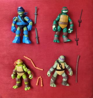 Set di 4 Tartarughe Ninja giocattolo in ottime condizioni. Sono in plastica e presentano dettagli molto curati. Perfette per i collezionisti o per i bambini. - Include 4 personaggi: Leonardo, Donatello, Michelangelo e Raffaello. - Sono in buone condizioni, senza rotture o danni evidenti. - Sono alte circa 10-12 cm.