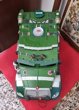 Veicolo da battaglia Mini Battle delle Tartarughe Ninja del 2006. Include diverse action figure. - Veicolo principale verde. - Action figure delle Tartarughe Ninja. - Dettagli del veicolo come gru e cabina apribile.