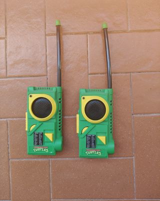 Vendo due walkie-talkie delle Tartarughe Ninja, in buone condizioni. Sono color verde e giallo, con le antenne nere. - Sono due walkie-talkie. - Hanno un codice Morse stampato sul retro. - Sono perfetti per giocare.