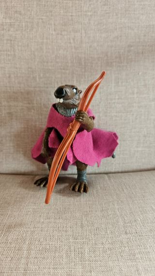 Figura vintage di Splinter, il maestro delle Tartarughe Ninja. - In ottime condizioni. - Include arco e mantello. Arco danneggiato, manca la cinturina in gomma