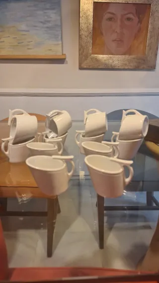 Set di 12 tazze del marchio Kaiku. Sono di colore bianco e hanno un design moderno. Materiale: ceramica. Colore: bianco. Quantità: 12 pezzi.