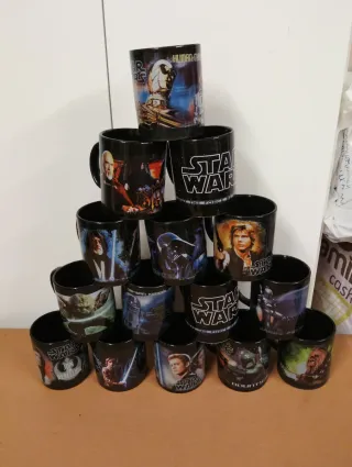 Set di quindici tazze con design di Star Wars. Personaggi iconici della saga. Ideali per collezionisti o fan. A 4 €/unità, totali 55 €.
