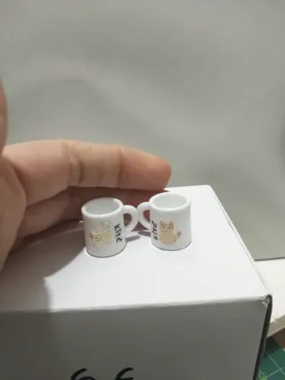 Set di due tazze piccole, perfette per diorami o collezioni. Dimensioni ideali per scala 1/6. Design con gattini. Colore bianco. Disponibili altre unità.