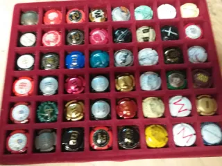 Collezione di 96 tazze da cava con diversi design e colori. Perfette per collezionisti. Tutte diverse - Varietà di colori: rosso, blu, verde, oro, argento, giallo, bianco e nero. - Design vari con motivi grafici e testi. - Materiali diversi come metallo e plastica.