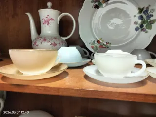 Set di deliziose tazze in porcellana con disegni floreali. Include tazze e piattini. Ogni pezzo presenta un design unico. Ideale per collezionisti o decorazione.