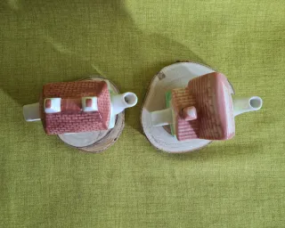 Teiere in ceramica a forma di casetta, perfette per un tocco vintage. Vendo in blocco - Design unico a forma di casa. - Materiale: ceramica. - Ideali come oggetti decorativi o da collezione.