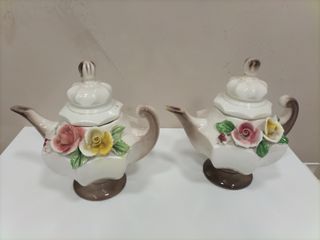 teiere antiche con fiori in rilievo. Ha solo un piccolo difetto in una delle sue copertine