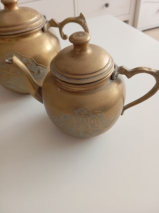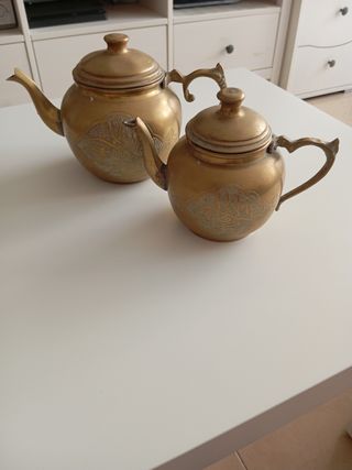 Le teiere antiche sono realizzate in bronzo e rame e sono lucidate per impedirne la pulizia. Due teiere da quaranta euro ciascuna