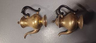 Bellissimo set di due teiere antiche in ottone. Sono in buone condizioni, mostrano segni del tempo che contribuiscono al loro fascino vintage. - Due teiere in ottone. - Design elegante e dettagli decorativi. - Perfette per collezionisti o amanti del vintage.
