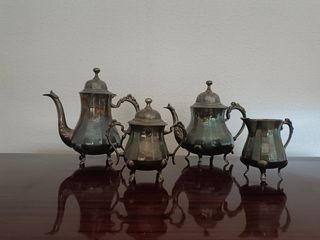 Set di teiere antiche in Alpaca. Misura 14 cm di altezza. Design classico ed elegante. Ideale per collezionisti o decorazione.