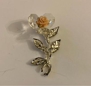 Delicato fiore decorativo realizzato in vetro. - Dettagli in metallo dorato. - vetri trasparenti e color champagne. - Perline luminose.