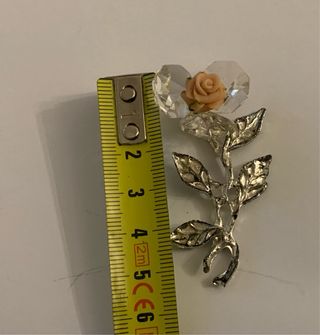 Delicato fiore decorativo con petali in vetro trasparente e un piccolo bocciolo color pesca. - Stelo e foglie in metallo color argento. - Design elegante e raffinato.