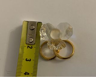 Delicato fiore decorativo con due fedi dorate. - Fatto di vetro trasparente e perla. - Dettagli in metallo dorato.