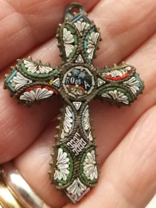 Croce antica ottone micromosaico Roma