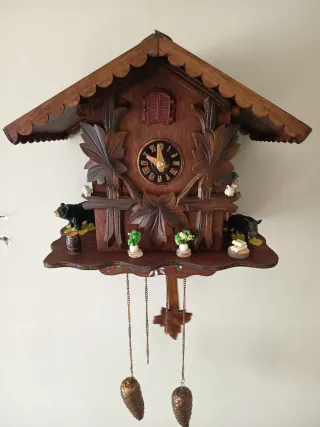 Meccanismo cucù con pesi lancette catene uccellino completo sicuramente funzionante ma siccome non ne capisco vendo come non funzionante