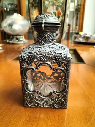 Bottiglia antica in cristallo e Argento 925