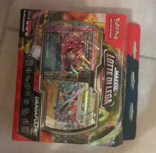 Mazzo di carte Pokémon Lotte di Lega con protagonista Dragapult EX. - Contiene carte Pokémon. - Mazzo per allenatori provetti. - Include carte Fezandipiti ex e Zaccata Jet.