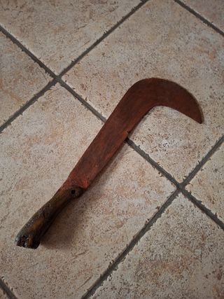 Vendo falcetto antico - Manico in legno scuro. - Lama in metallo, color ruggine. - Oggetto unico, ideale per collezionisti.