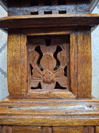 Bellissima colonnina in legno, perfetta per arredare con stile la tua casa o il tuo giardino. Intarsiato a mano, utilizzabile anche come porta lampada interna. - Realizzata in legno massello. - Design elegante e senza tempo. - Dimensioni compatte, ideale per piccoli spazi. Misure : 31 cm x 18 cm