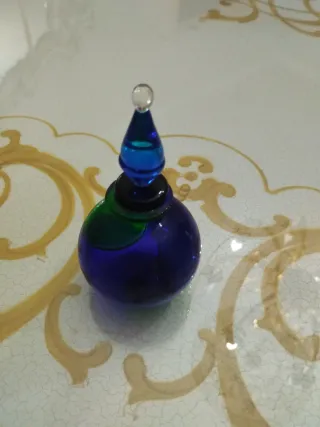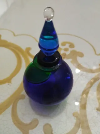 Raffinata bottiglietta in vetro soffiato, un pezzo unico di artigianato di Murano. - Design elegante e colorato. - Perfetta come oggetto d'arredo o da collezione.