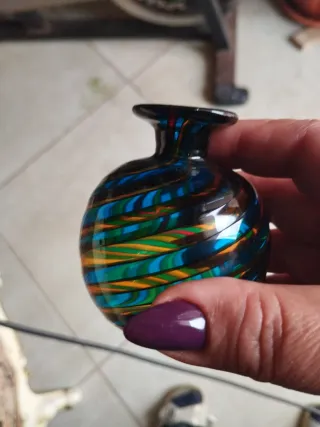 Deliziosa bottiglietta in vetro soffiato, un pezzo unico vintage. - Design a spirale colorato. - Bocca stretta e forma arrotondata.