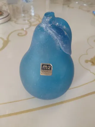Deliziosa pera in vetro di Murano Scavi, colore blu. N.B.manca un pezzettino sopra guarda foto - Design a forma di pera. - Finitura opaca. - Etichetta m2 Murano 2 Italy presente.
