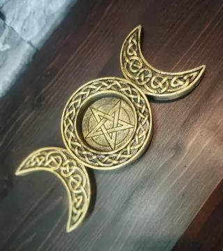 Realizzato e pitturato a mano Materiale Gesso Alabastrino Misure descritte in foto Colore oro / dorato antico sfumato nero, finitura metallica, effetto pietra. Vassoio ornamentale forma Triple Moon (Tripla Luna ) con pentacolo / pentagramma centrale. Decoro casa gotico pagano wiccan piccolo piatto svuota tasche porta anelli esoterico triplice dea / tre lune crescente, trinket dish stile alchemy gothic stella Elegante e particolare cofanetto box pentacolo/ pentagramma wicca paganesimo nemesi Design home massoneria trinità sigillo esoterico tarocchi occulto triade pentacostale scrigno box contenitore gotico Arredamento casa design