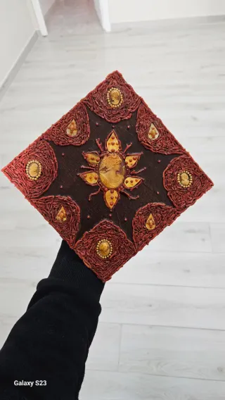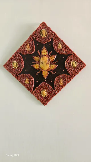 Bellissimo quadretto decorativo realizzato a mano con corallo e dettagli di cammei realizzato da artigiani torresi misure 28×28 cm - Decorazione centrale con cammeo. - Cornice in corallo. - Dettagli con cammei e perline.