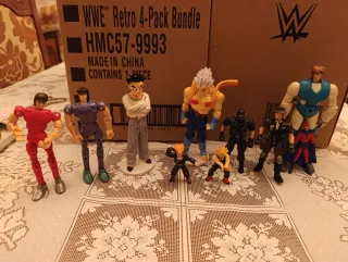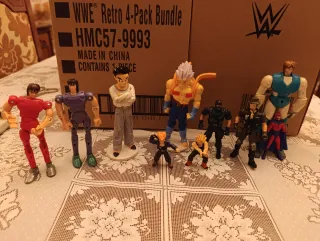 Set di action figure WWF Hasbro degli anni '90. - Personaggi iconici del wrestling. - Dettagli fedeli ai wrestler originali. - Ideali per collezionisti.
