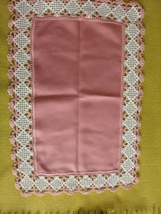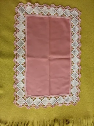 Centrotavola uncinetto vintage rosa e bianco