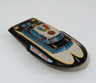 Motoscafo giocattolo in latta, modello Polizia. - Design tipico degli anni '60. - Decorazioni a tema Police Patrol. Sono sempre disponibile:basta un messaggio e ti risponderò il prima possibile, con foto aggiuntive, misure, informazioni dettagliate o qualsiasi altra richiesta. Ci tengo che tu sia sicuro e soddisfatto prima dell’acquisto. Gli imballaggi sono accurati e protettivi, perché ciò che acquisti arrivi a casa tua esattamente come lo vedi in foto. ( CIÒ CHE VEDI È QUELLO CHE RICEVI)