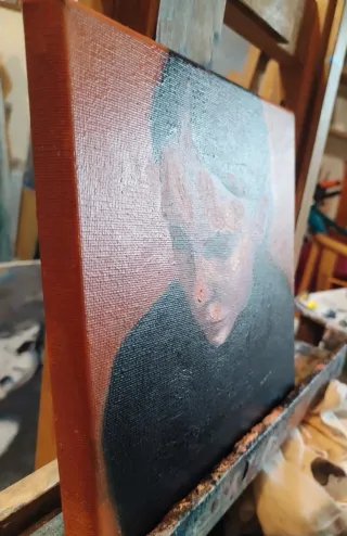 Ritratto di una lera con sfondo arancione. Allego certificato di autenticità - Dipinto ad olio. - Tecnica pittorica materica.