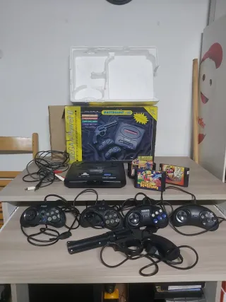 Non testato perché non ho il cavo di alimentazione. Megamaster 16-Bit con accessori e giochi. - Console Megamaster 16-Bit - Pistola - 4 controller - Giochi: The Flintstones, altri 2 giochi inclusi
